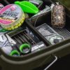 A Kontainer System tökéletes megoldás arra, hogy a PVA zacskós előkészületeid rendben legyenek. Minden szükséges dolgot egy helyen tárolhatsz, védve az időjárástól, és ami a legfontosabb: rendszerezetten, azonnal használatra készen. Nem kell többé a hátizsákod alján keresgélni a PVA zacskókat, vagy a súlyok között kutatni egy 3 oz-os inline ólom után – a Kontainer System mindent elrendezve tárol egy praktikus, moduláris 10 literes vödörben: pelleteket, porokat, zacskókat és apró kiegészítőket.
