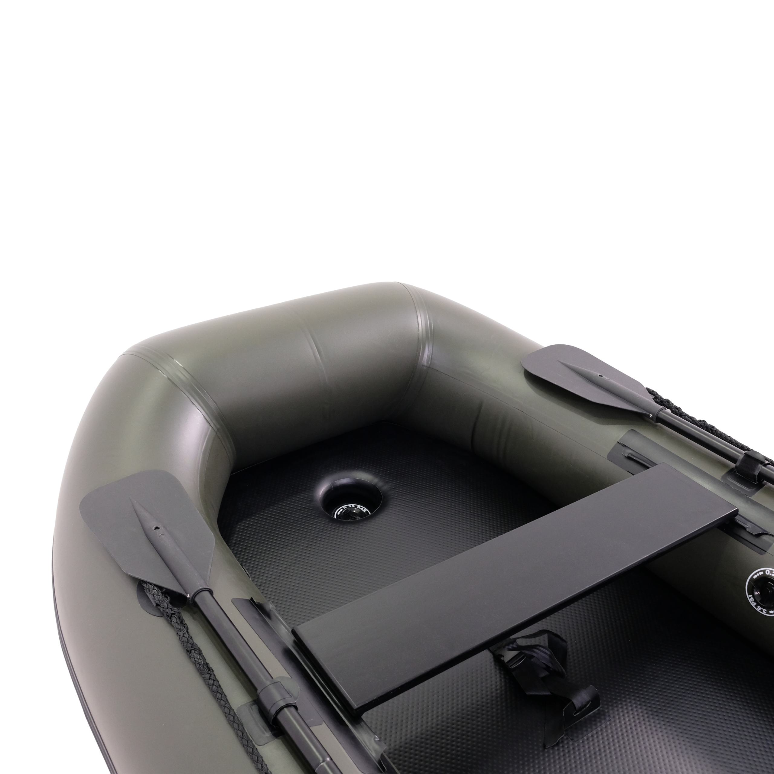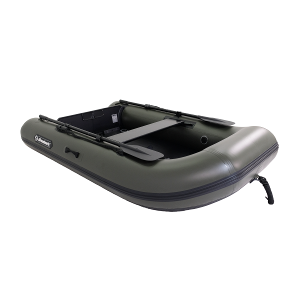 Léggerinc, nagynyomású légpadló szenszálas deszkákkal, és szép széles egészen az orráig – Tökéletes etetőcsónak kis és közepes tavakra. Közepes gyűrűátmérő és 0,7 mm-es anyagvastagság.