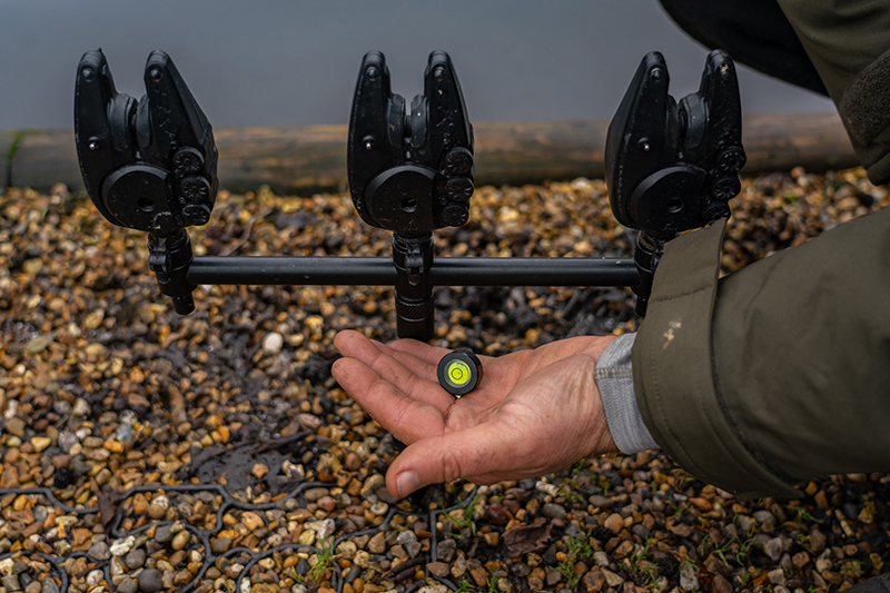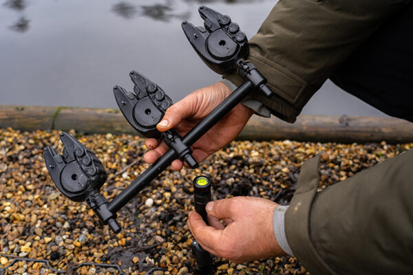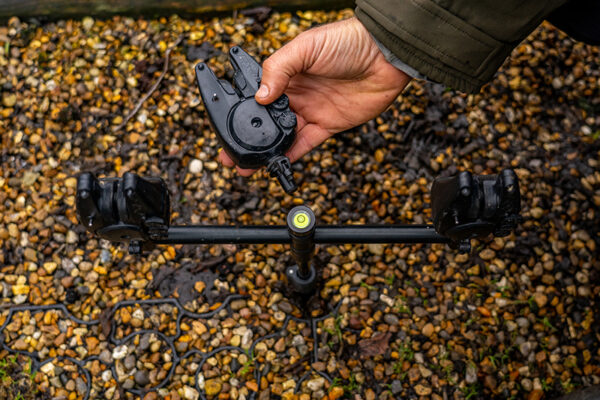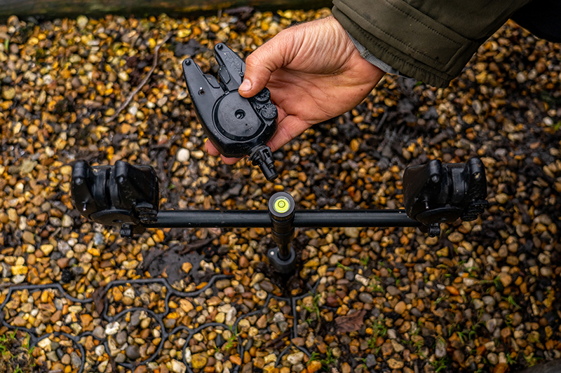 - QR Buzz Bar használatakor: veddi ki a középső elektromos kapásjelzőt az elől lévő, és a középső bottartó villát a hátsó buzz barból, helyezd a helyükre a libellát és 10 fokos elfordítással biztosítsd a rögzítést.