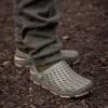 A Fox Khaki Clogs praktikus választás minden horgász számára, aki a vízparti komfortot helyezi előtérbe. Ez a klasszikus klumpa fazonú papucs ideális a sátorban való viseléshez, vagy akár ahhoz, hogy gyorsan belebújj, amikor kapás van. A légáteresztő, perforált felsőrész nemcsak a maximális szellőzést biztosítja, hanem a gyors vízelvezetést is, így akár esős, nedves környezetben is kiválóan teljesít.