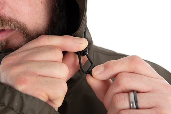 Az oversize szabás lehetővé teszi, hogy akár ruházaton vagy horgászfelszerelésen is viselhető legyen. A dupla bungee állítók és az elasztikus mandzsetták biztosítják a megfelelő illeszkedést és extra védelmet az eső ellen.