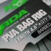 A Korda Solidz PVA Rig Size 4B Wide Gape 18lb – szakáll nélküli el?kötött 4-es horog PVA zacskóhoz?, melyek nagyon megbízható Wide Gape horgokkal és 18 lb Supernatural Braid Weedy Greenben 4,5 incs hosszban (kb.10 cm) készülnek. Így ezek az előkék a legjobb választás a PVA zacskókhoz. A rövidsége miatt nagyon jól akad és a szilikon a horogbefordító segít, hogy jól akadjon a hal szájában.