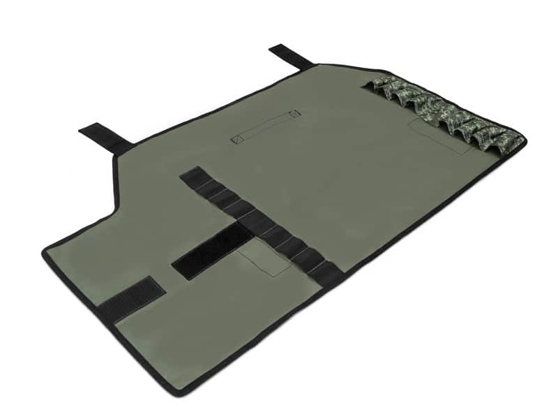 A Delphin STICK SPACE egy praktikus tok a leszúróknak vastag szövetből, mely belül gumírozott, így ez az oldal könnyen megtisztítható az esetleges szennyeződésektől. A tok úgy van kialakítva, hogy akár 8 darab vastagabb átmérőjű leszúrót is tárolhat benne, amelyek hegyesek mint a C-STICK vagy a D-STICK. Ezért a hegyek beillesztésére szolgáló alsó részt vastag és megerősített anyaggal láttuk el. Most már a leszúrók nem bökik ki a táskáját és nem sérülnek meg a táskájában tárolt dolgok. Egyszerűen feltekeri a tokot a leszúrókkal, és tépőzárral rögzíti, ami egyben védelmet is nyújt a karcolásokkal szemben is. A tok tetejére egy pánt van varrva, amely fogantyúként szolgál a szállítás megkönnyítésére.