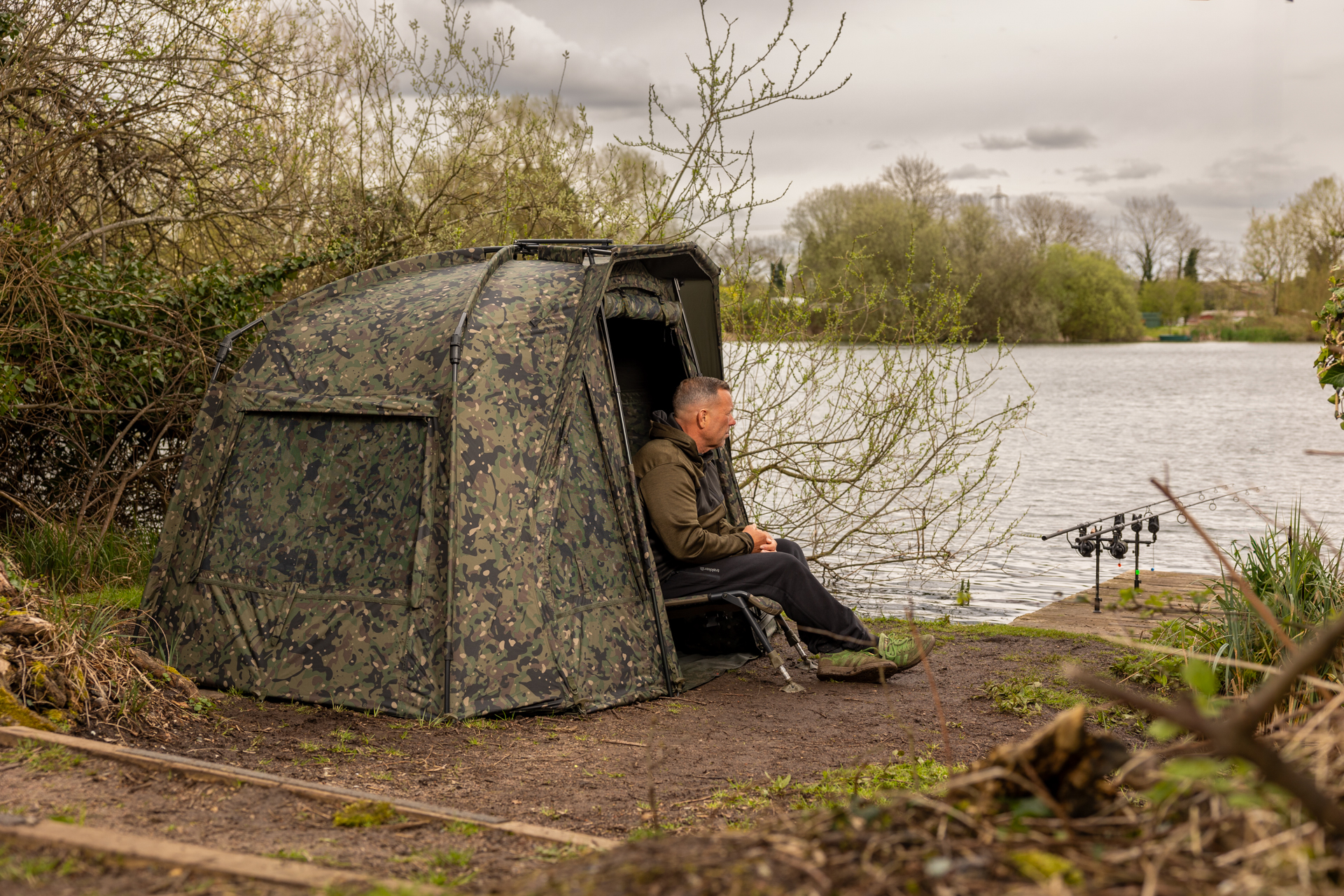 The quickest, „easy-erect” shelter just got even better with the introduction of the phenomenal Tempest RS 100 Camo. At the core of this one-man fishing bivvy is the renowned, patented hinge block, allowing for ease and speed of set-up. The set-up time, usability and functionality have all been enhanced even further with the Rapid Knuckle System®, enabling all five main poles to lock into position in one effortless action. Simple, secure and strong, erecting your shelter has never been easier.